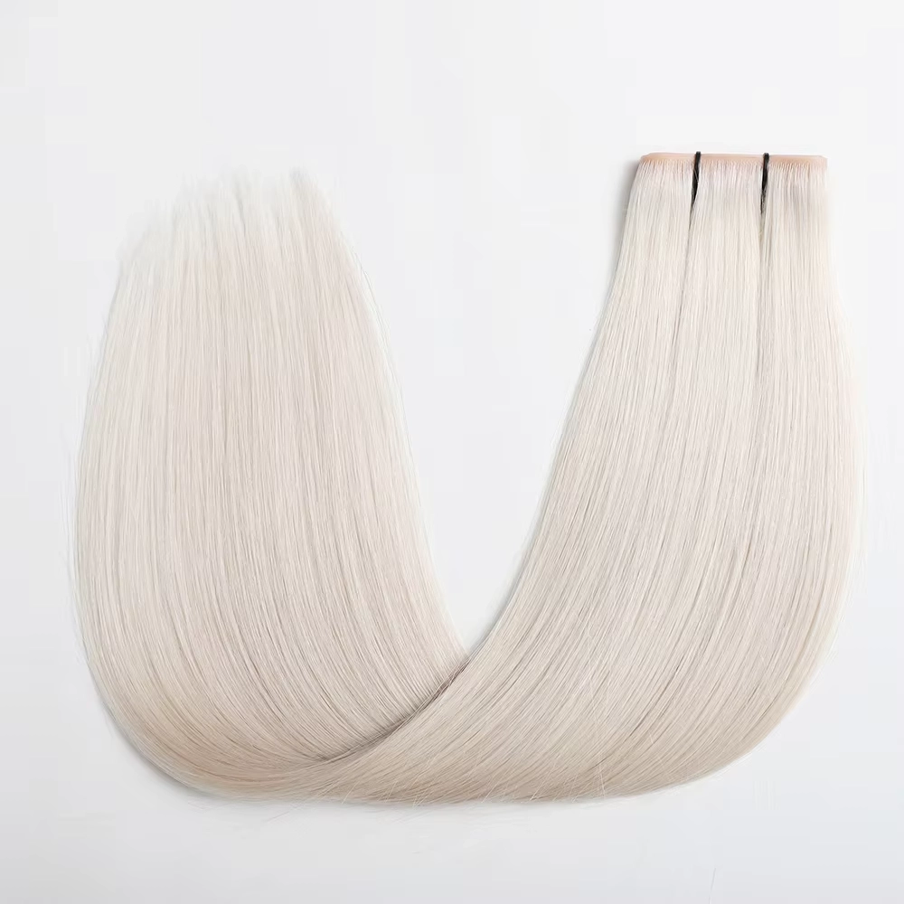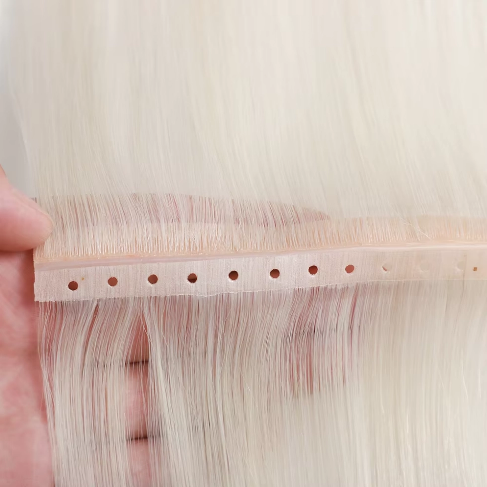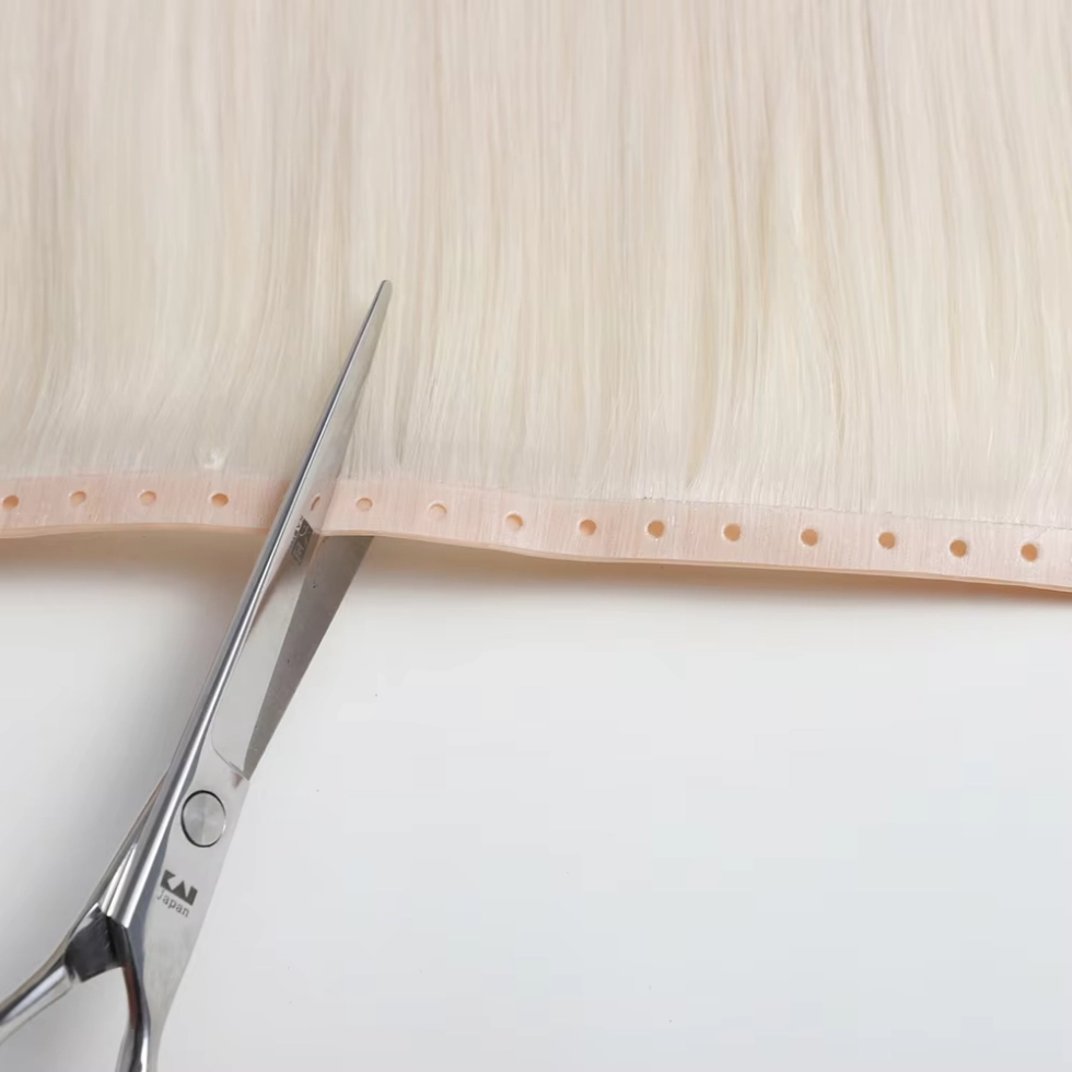 Bước 3: Cài đặt chính xác Đặt các sợi ngang hình con bướm dọc theo các hàng neo, căn chỉnh chúng theo độ rụng tự nhiên của tóc khách hàng. Sử dụng lực căng có kiểm soát để cố định các sợi ngang thông qua kênh hạt—việc siết quá chặt sẽ dẫn đến kích ứng da đầu, vì vậy hãy tìm điểm phù hợp giữa sự an toàn và sự thoải mái. Cắt bớt các sợi ngang khi cần thiết để vừa với độ cong của đầu và gấp các mép để tránh bị sờn.
