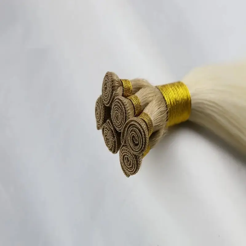 Sau khi có được những sợi ngang mỏng nhất? Phần mở rộng tóc buộc bằng tay của Lum Hair là sản phẩm bạn nên sử dụng. Những sợi ngang được buộc bằng tay này nằm siêu phẳng trên da đầu, cho phép lắp đặt liền mạch mà không cần chất kết dính. Chúng hoạt động hoàn hảo cho cả phương pháp bôi truyền thống và đính cườm, phù hợp với mọi loại tóc—mỏng, mịn, dày hoặc thô—mà không gây rụng tóc. Chúng tôi cung cấp các sợi ngang này dưới dạng gói, với trọng lượng từ 45g đến 60g tùy theo chiều dài. Mỗi gói chứa 4 sợi ngang, giúp khách hàng hoàn toàn linh hoạt trong việc trộn và kết hợp các màu tóc khi cần.