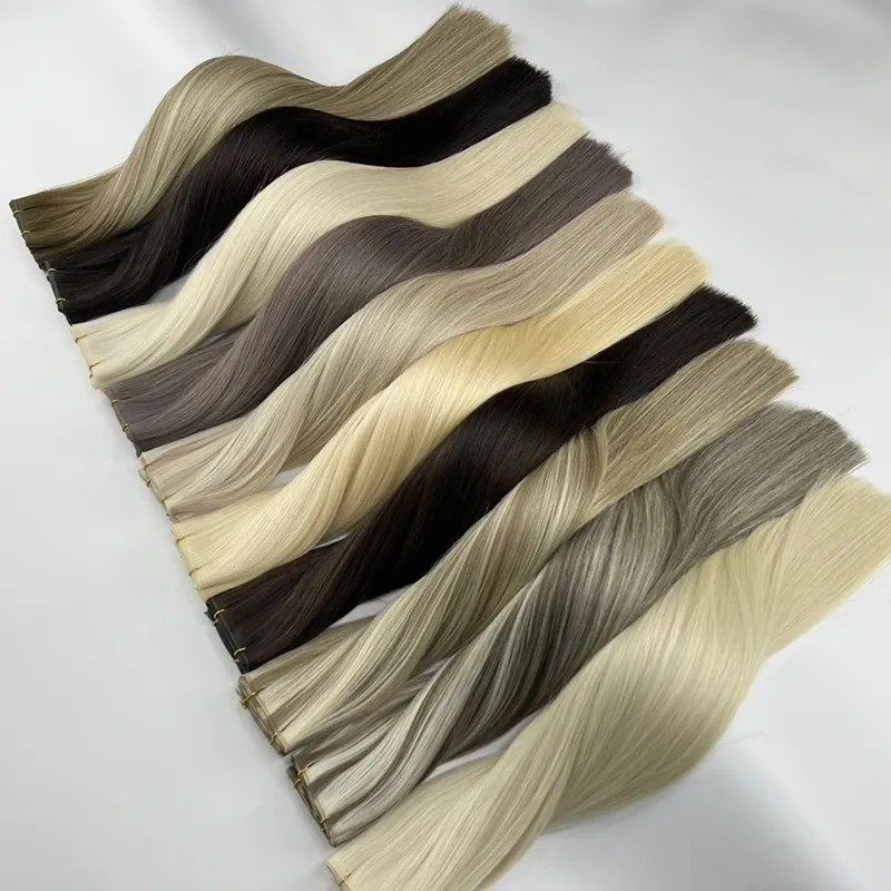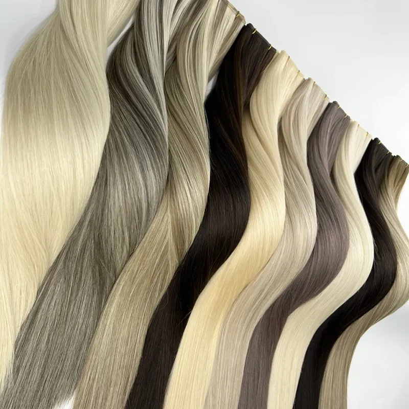 Chỉ định Loại tóc nối (Sợi ngang/Kẹp trong/Băng dính/Liên kết), Loại tóc (Tóc Remy biểu bì/Tóc Remy tiêu chuẩn), Cấp độ (Cấp cao/Cấp tiêu chuẩn), Độ dài (12"-30"), Màu sắc (Tối/Sáng/Balayage/Màu hỗn hợp) hoặc ghi nhãn riêng.